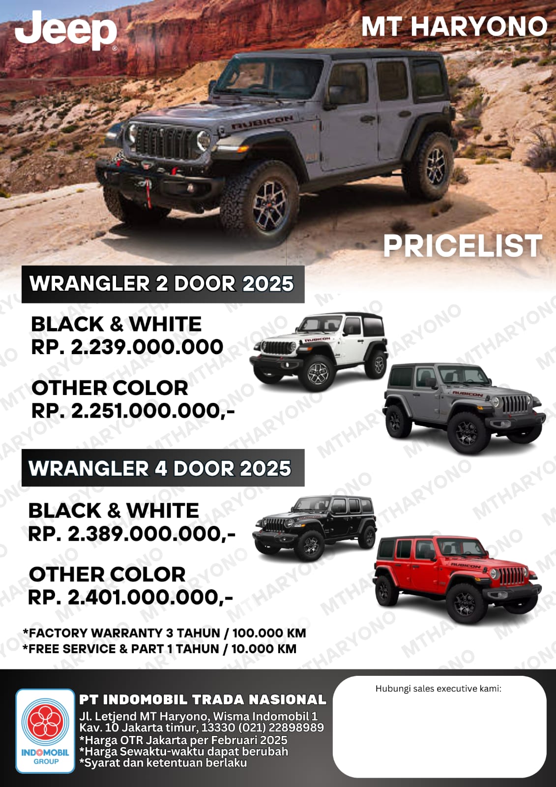 Dapatkan Promo dan Harga Jeep Jakarta Terbaik. Pelayanan Kami mencakup seluruh wilayah Indonesia.